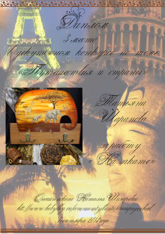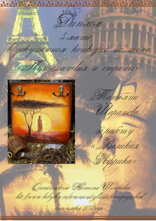 Виктория в ОН-ЛАЙН ШКОЛА ДЕКУПАЖА НАТАЛЬИ ШИХАРЕВОЙ 11 лет Дипломы по конкурсу "Путешествия и страны" Конкурсные работы Спасибо за изготовление дипломов Татьяна Посмотрите еще 20 записей на эту тему Отменить Ответить Irina. Спасибо , очень приятно получить диплом ))) 16.05.2015 Ответить Татьяна Шарапова Татьяна, ОГРОМНОЕ СПАСИБО за дипломы!!! 10.05.2015 Ответить Дипломы по конкурсу "Монохром/сепия" Дипломы по конкурсу "Мама, папа, я - дружная семья!" Чаты Беременных Выберите чат: Январята-2026 Февралята-2026 Мартята-2026 Апрелята-2026 Майчата-2026 Июнята-2026 Июлята-2026 Августята-2026