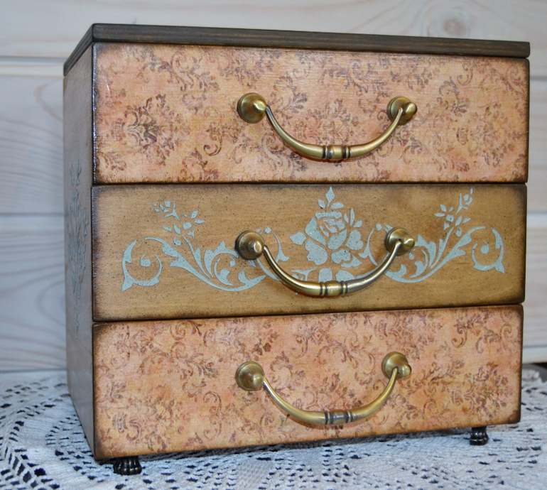 материалы- заготовка из фанеры,клей,лак акриловый,морилка на водной основе,структурная паста,трафарет,декупажн.карта и распечатка,фурнитура.
