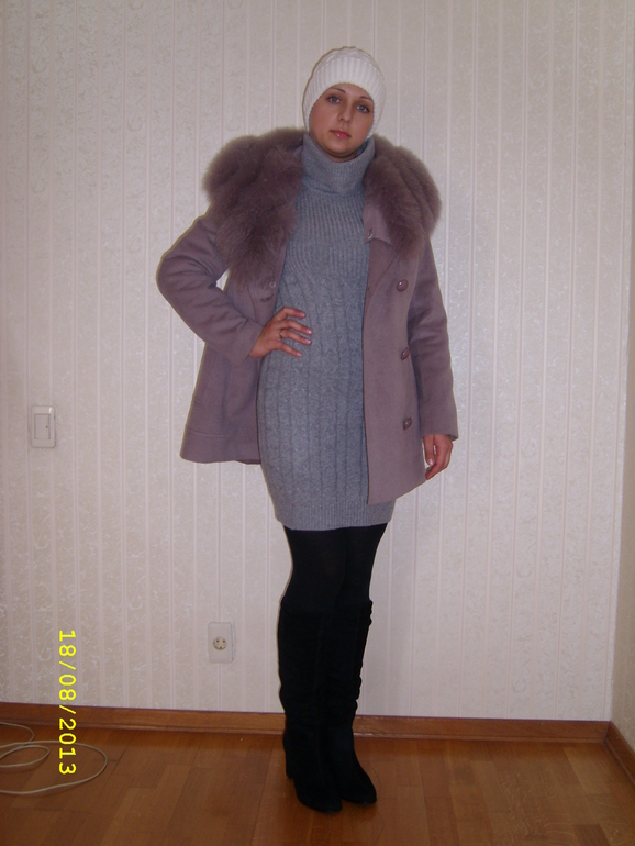 Что-то в живую я себе так понравилась, пушистенькая мягенькая. А на фото клуша клушей ( Сапоги купила замшевые на невысоком каблуке. Юбок не нашла шерстяных, а ПЭ как-то не хочется. Вот думаю, может сшить... Под пальто я это меряла, смотрелось хорошо. (на удивление хорошо смотрится с ним любая длина, кроме мини). Юль, я тебя наверное разочаровала своим выбором? Как тетка смотрюсь?