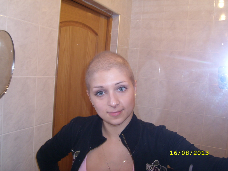 По необходимости постриглась ((( Но особо не переживаю по этому поводу (по крайней мере не стесняюсь своей лысой головы, но на людях в шапке хожу).