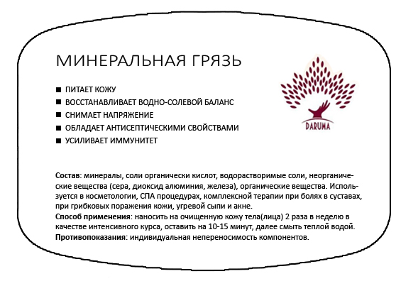 А еще текст составлен не совсем верно. Насколько я знаю, "сертификация" сейчас не разрешает употреблять слова "лечебная", нужно будет что-то другое придумать. Ну и определиться с названием грязь или глина.