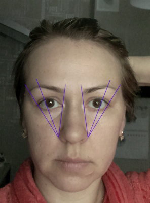 Вот брови, вроде получилось более менее их сделать с одинаковым изгибом!