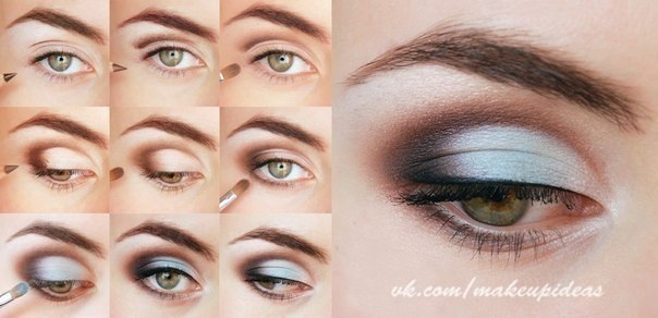 Глаза мы красим не зависимо от их цвета. Мы вибираем вид макияжа взависимости от их формы. Дневной или вечерний - меняется насыщенность цветов. Но форма остается.