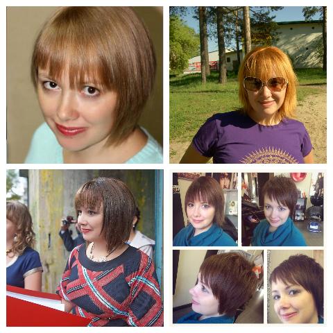 Мне понравился вариант который в платье ( т.синее с красным ) но короткая ассиметрия тоже имеет место бвть )))) волосы не зубы отрастут )))