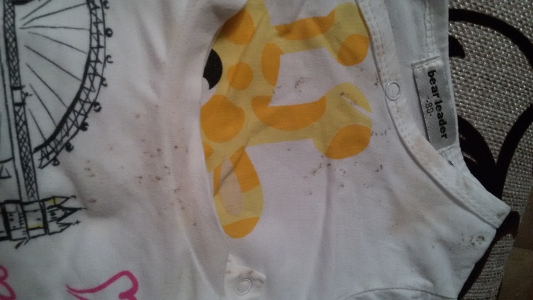 Единственное на что думаю банан или яблоко. Ушастый нянь пятновыводитель с порошком не справились.