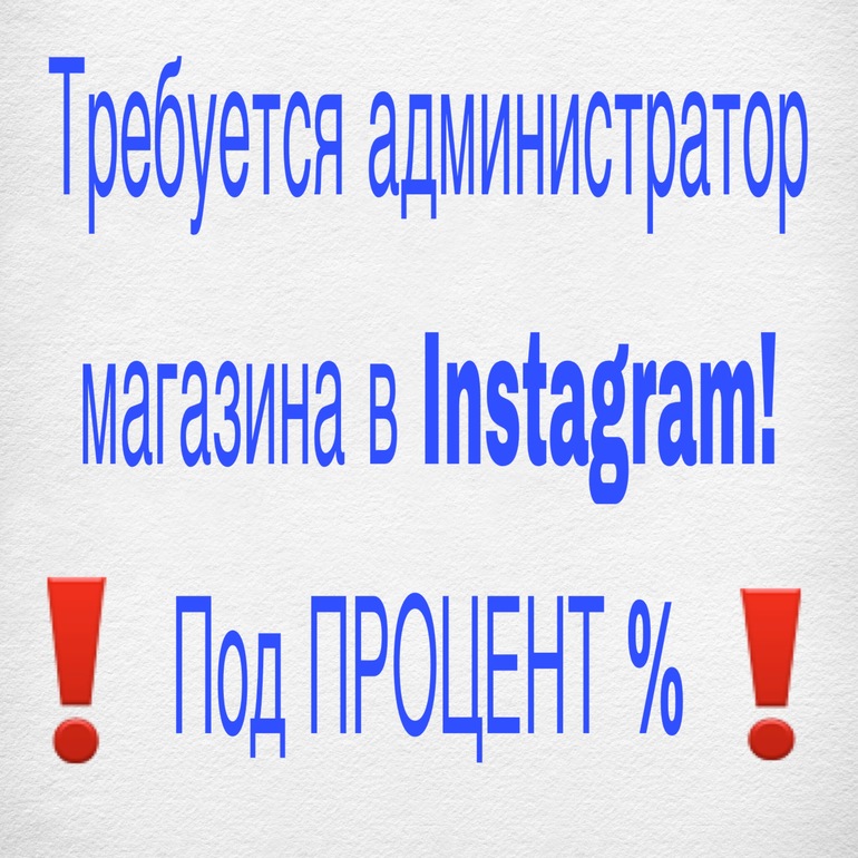 Требуется администратор магазина в Instagram под ПРОЦЕНТ БЕЗ вложений Условия: ведение страницы, приём заказов и поиск новых, продвижение, поднятие магазина на новый уровень, общение с клиентами. Требования: город Москва, наличие Сбербанк Онлайн (для оплаты вашей работы), наличие iPhone, Facebook, эл.почта, Viber, WhatsApp Опыт и примеры работ приветствуются. Подробная информация - в личку.