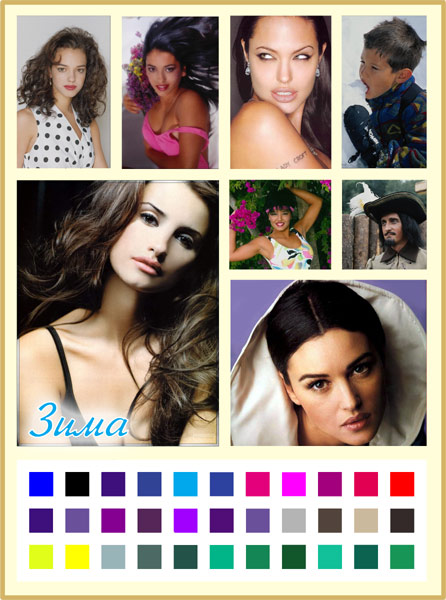 ну однозначно не лето и не весна... я вот осень но очень мне хочется быть зимой и я всячески себя переделываю))))) тут мне кажется похоже. чёрный цвет тебя не портит нои не особо украшает- хотя ээто может просто изи за перебора- чёрные брови чёрные волосы... от оранжевого осеннего кода краснеет... в общем я считаю что вс же зима- по крайней мере если даже не совсем зима а очень хочешь её быть то тебя это не портит.... сейчас придёт эксперт юля- и мы узнаем точно...