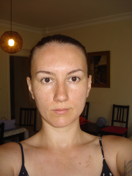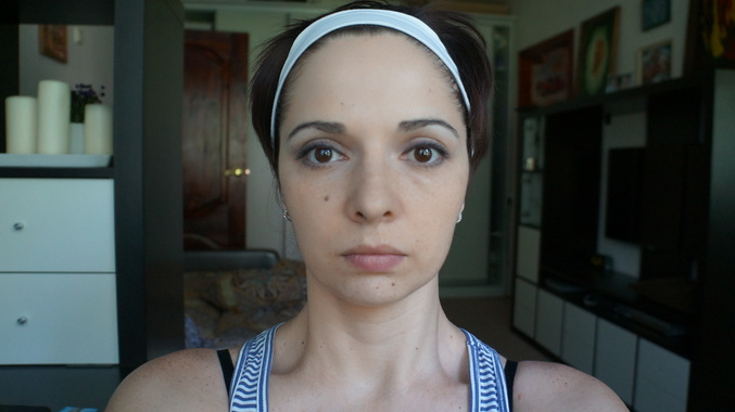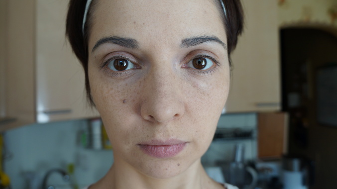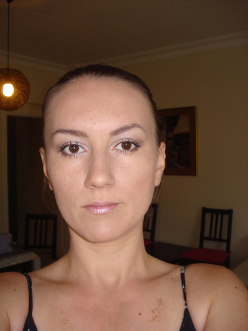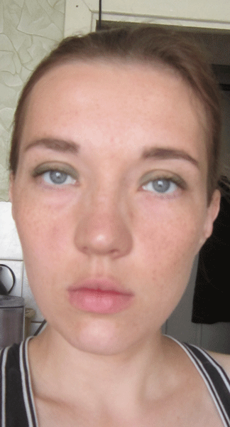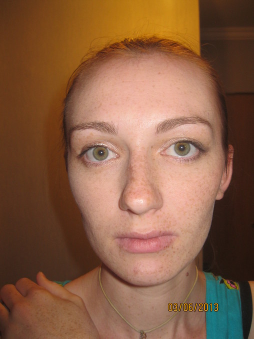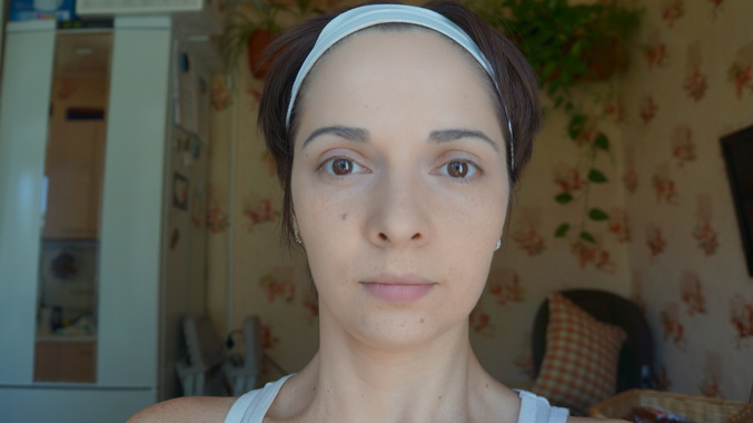 А на этой фотоаппарат спрятал веснушки и синяки, но здесь видно как я ошиблась с выбром цвета тональника и пудры - шея накрашена только с одной стороны. Хотя через месяц буду более загорелой, может будет лучше подходить.