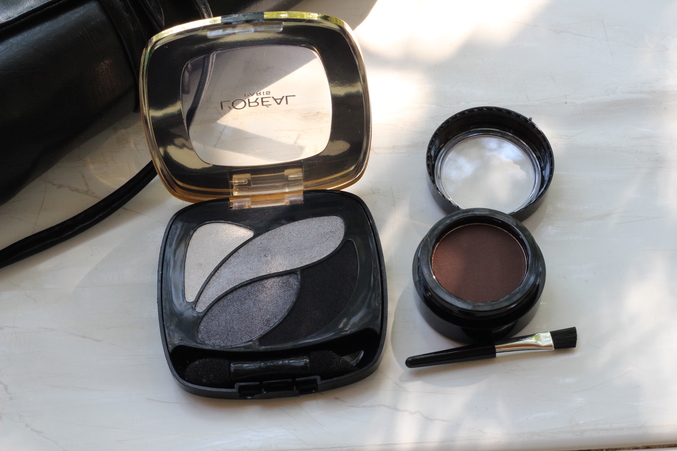 Весь набор покупала в Рив Гоше. Стоит 670 рублей. Плюс эта кисть отдельно - 260 рублей. Набор теней (Лореаль) стоит 455 рублей.