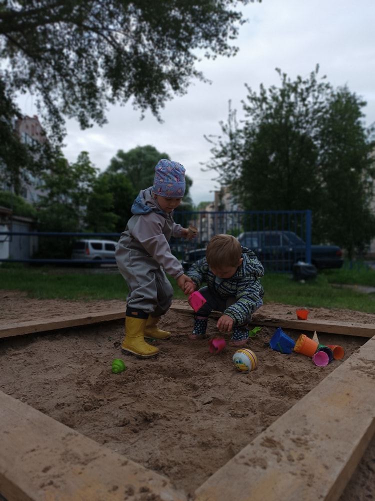 Вспоминаю песочницу в дождь.Кошмар.Мокрый песок на всем потом,комбинезон в коридоре вытряхиваешь и песок всё равно остаётся.Игрушки потом отмывать.