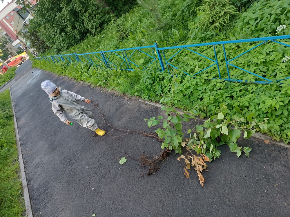 Сегодня пересадили дерево наше с балкона, Наконец-то, корень почти три метра