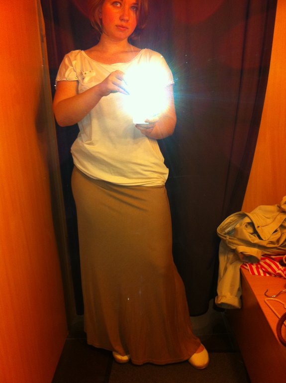 Образ на сегодня очень нравится, позитивно.)))Я бы к юбке приобрела ещё топ на брительках, с вырезом по форме груди, цветок в волосы и был бы такой романтишный образ.))
