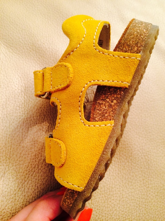 В Италии купила сандали ребенку, но с размером прогадала. Оказались малы. Сандали очень клевые. Верх-замша, подошва-пробка+ каучук. Цвет на лето самое то. Подходят как на девочку, так и на мальчика. Покупала за 4700руб.