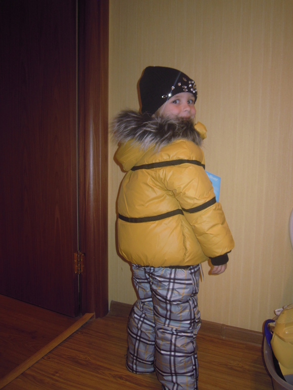 Размер комплекта 110 см, а рост у нас 102 см. Запас есть, но не сильно большой, то что надо) Куртка на хлопковой подкладке, утеплитель искусственный пух. Мне кажется, достаточно теплый комплект. Как раз на зиму подойдет. Мех от капюшона отстегивается и сам капюшон отстегивается от куртки.