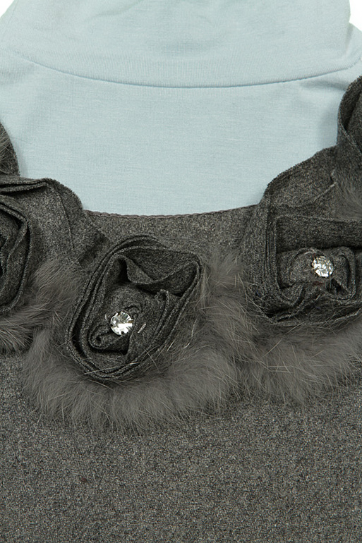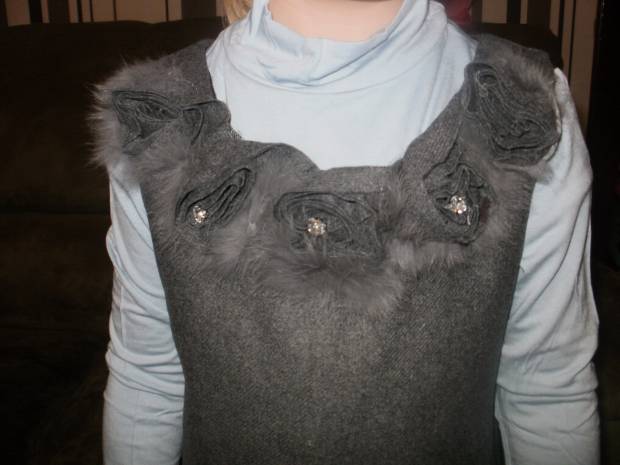 13. Сарафан +водолазка. Сарафан прямого кроя на широких бретелях. Низ изделия в виде оборки. Ворот декорирован цветами. Водолазка с низкой горловиной, декорированная мягкой драпировкой. Полноразмерный!!!