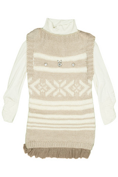 16. Туника + водолазка. Туника плотной вязки с оригинальным орнаментом по изделию. В верхней части декорирована небольшими бусинами. В комплект идет водолазка классического кроя. Ворот и рукава изделия с небольшой драпировкой. свитер-25% шерсть25% нейлон 50% акрил водолазка-95% ,хлопок 5% лайкра