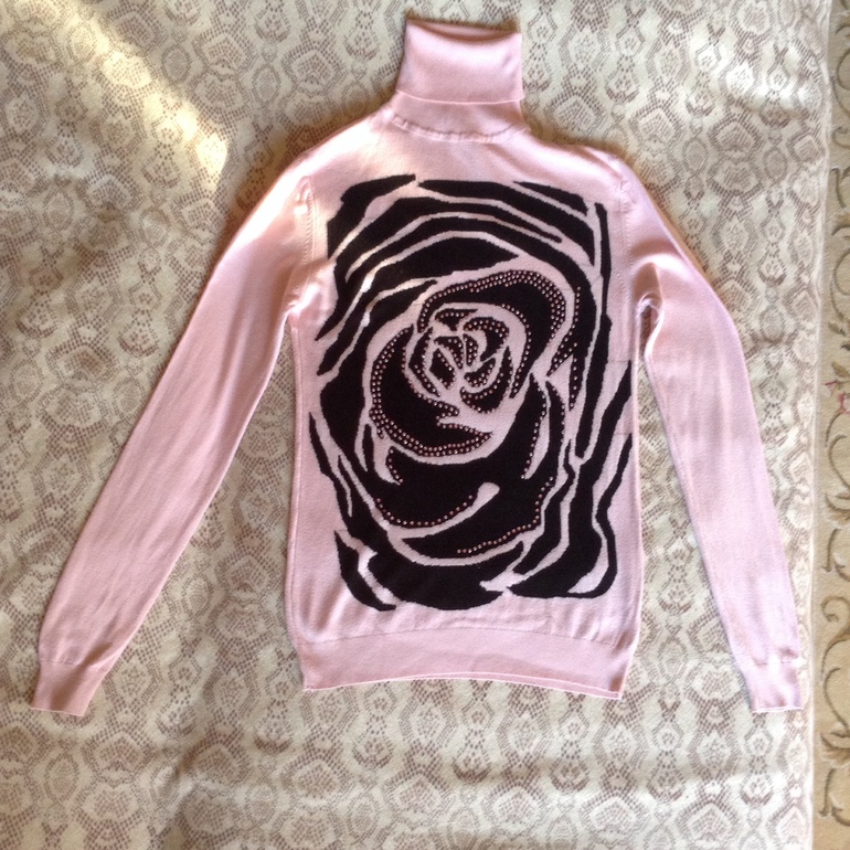 Продам красивый в стразиках с изображением розы свитер, б/у пару раз, заказывала в интернет магазине, был большеват на мой S, думала оставить, но одела пару раз и поняла, что на мне висит, так что в идеале. Бренд Gizia. Цена -3000 руб.(стоил дорого). Почта возможна. Замеры по запросу.
