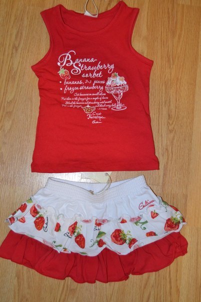 топ р-р 116 юбка 104,не смотря на разноразмерность все идет на рост 104-110