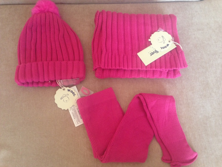 Есть еще рейтузы, точно такого же цвета, р.110. Состав пряжи как у комплекта, с ангорой и кашемиром. Если хочется могу и их отдать за 900 р (брала за 1195р.) Предполагала, что носить будем все вместе с курточкой или пальто.