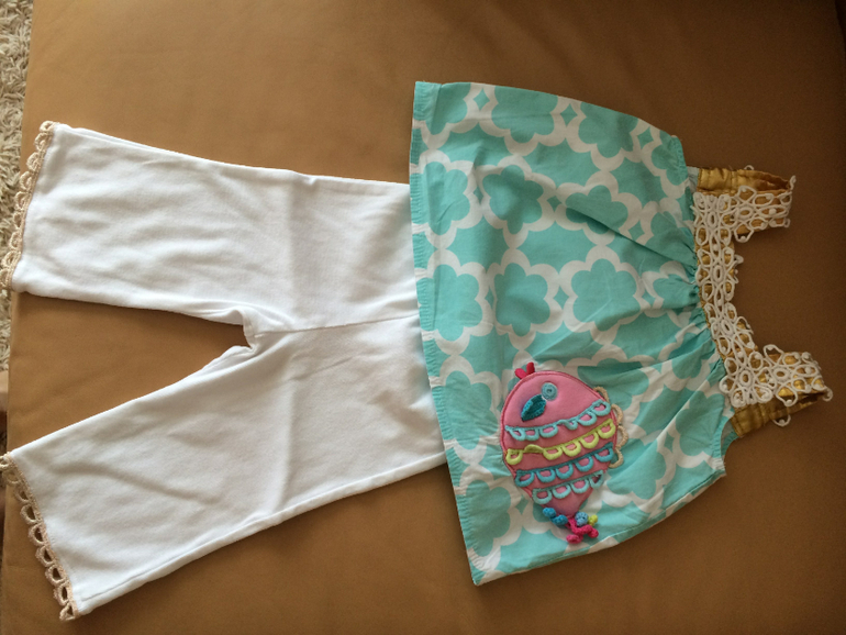 3. Костюм Mud Pie размер 2т. Очень нежный! Ткань блузки не выцвела, она изначально была с таким эффектом. Носили от 1,5 до 2,5 лет. Цена 1000 руб. Новая цена всего 800 руб. На фото на ребенке лосинки не от комплекта :) Продано!