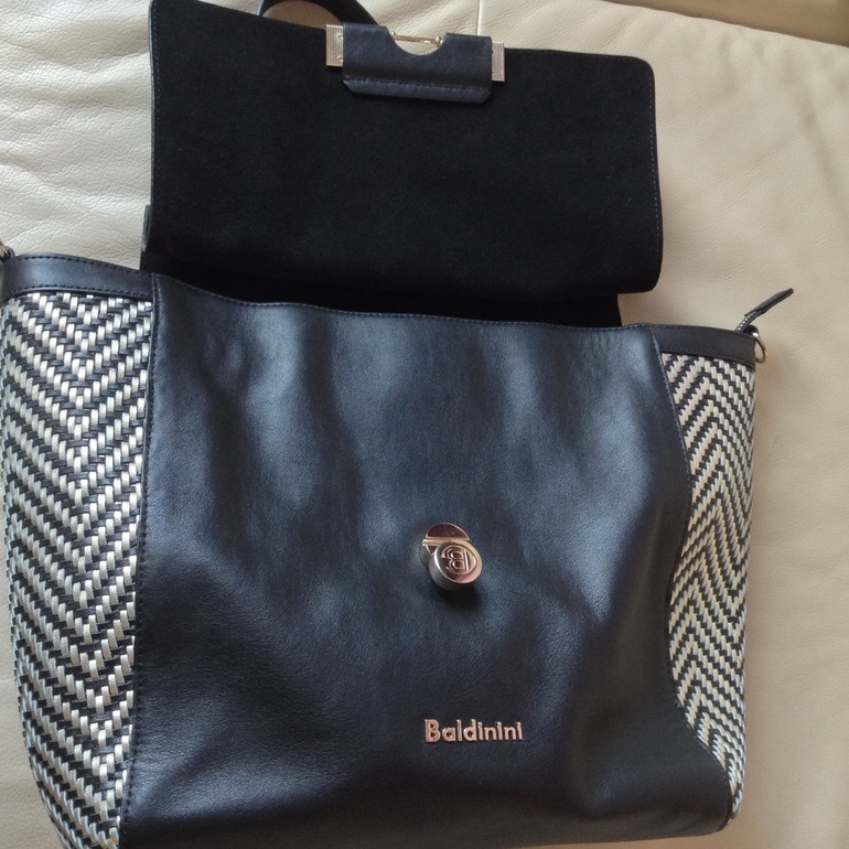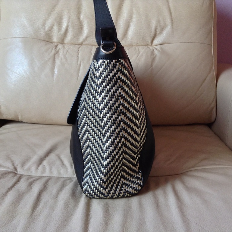Сумка новая! Только приехала из Италии, кол-ция весна 15, покупала здесь, у Марины! Мягкая кожа, очень хорошо пошита, удобная, есть длинный ремешок! Боковые вставки кожанное плетение черное с золотом светлым.