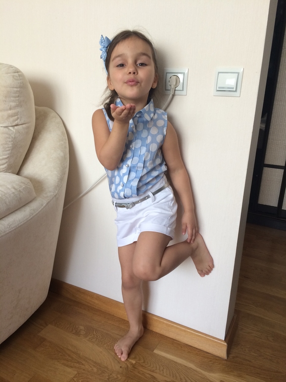 Девочки, спасибо большое, все вещи очень понравились, у нас еще шапки и аксы из закупки, но моя модЕль очень вредненькая и померить на нее что то большая проблема! Вещи 110 размер, нам 5 лет и 1 месяц, вес 17.5 кг, рост примерно 110 см. Все село идеально, шорты с утяжкой (мы утянулись))))), талия завышенная что позволяет заправить блузку в шорты, блузка тончайший батист с жемчужными пуговками, на самую жару. Ветровку поносим не один сезон и рукав и ширина с длиной дадут такую возможность! Шапочки на нашу тыковку в 54 см брала размер 52-54 см, по объему прям как раз , а вот высота получается с напуском))). Еще раз огромное спасибо, мы довольные как слоники)))