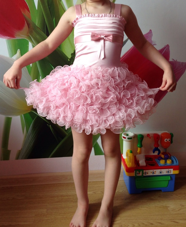 Продам новое платье, с этикеткой. Фирма "Маленькая леди", р.110. Хорошо будет от роста 100 см. Спинка сделана резинкой. Нам на 117 коротко и узковато в груди. 2000р. Могу выслать почтой. Очень красивое, мы себе взяли такое же, побольше размер.