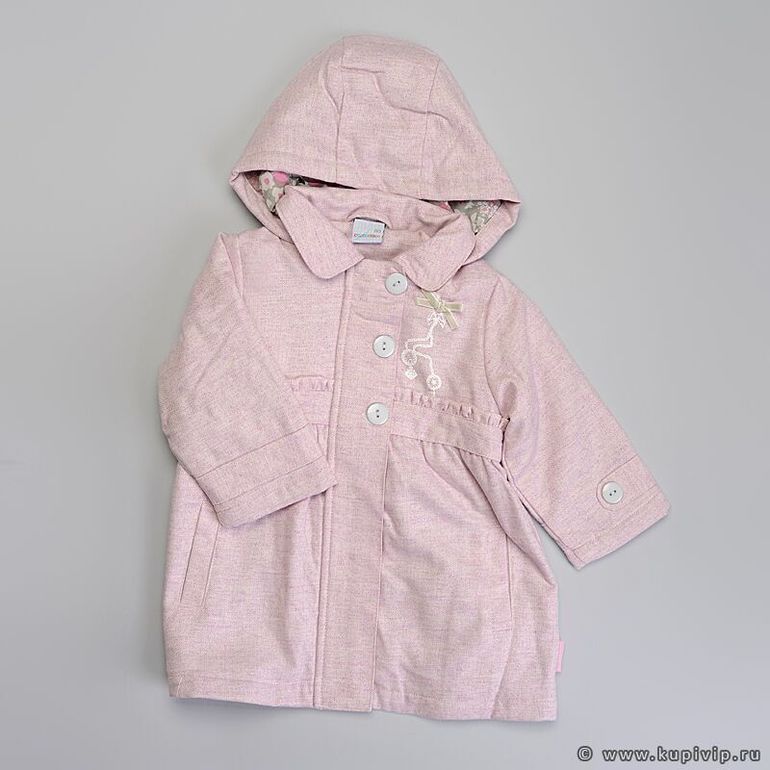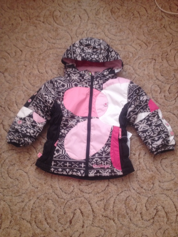 Куртка Catimini для девочки с поясом. Яркая вышивка на рукаве. Капюшон упаковывается в воротник. Длина по спинке (6 лет) - 49 см,рукав внешний 46