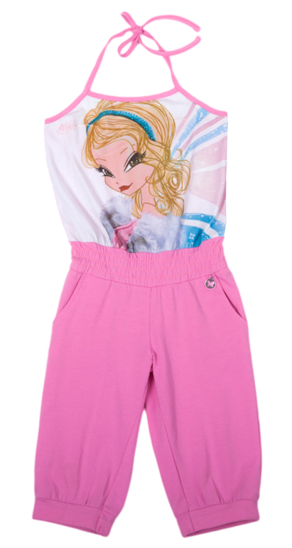 Трикотажный комбинезон - яркая, привлекательная модель коллекции. Он не сковывает движений, позволяя ребенку активно двигаться и играть. Крупный эффектный принт - выразительный элемент коллекции "Волшебницы Winx", без сомнения, порадует юных модниц. В оформлении принта блестящее напыление, стразы. Приятным сюрпризом для девочки будет стильный браслет, прикрепленный к этикетке модели.