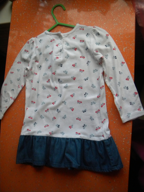 42. Платье Colabear Маркировка 106см, полноразмерное . Горошинки побледнели, и чуть полиняло платье под бантом спереди, почти незаметно. Цена 300руб. Плотный трикотаж