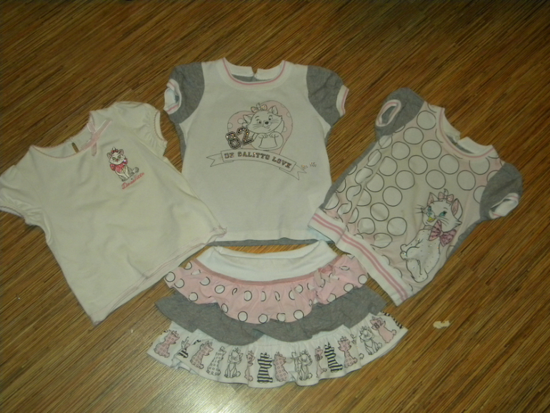 De Salitto Вот этот набор : две майки слева плюс юбка 1000руб. , на майке справа( с большими кругами) есть пара пятен, не очень заметных, но всё-таки.Майку справа дарю при покупке набора))) Состояние отличное, носили мало, вещей много , растём быстро)