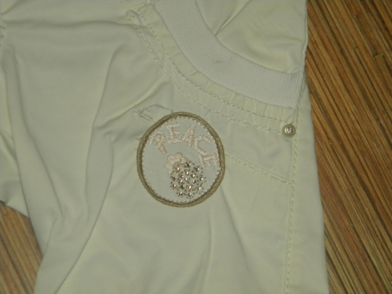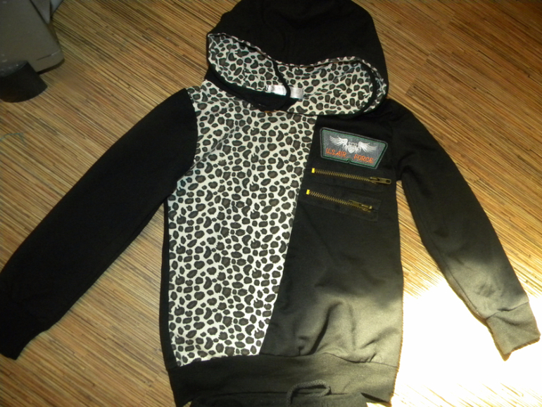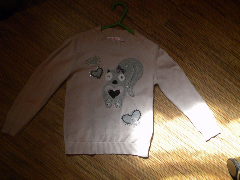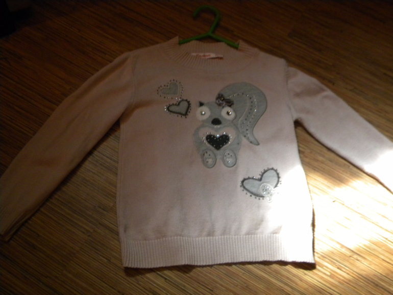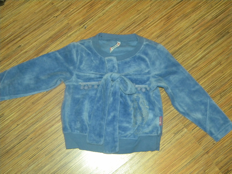 Кофта на молнии Deloras. Отличное качество, без катышков, очень красивая, стразы на месте. Из нюансов - на левом рукаве на локте пятнышки краски, влезла дочь на детской площадке, удалять не пробовала, думаю. это возможно). Цена 350руб.