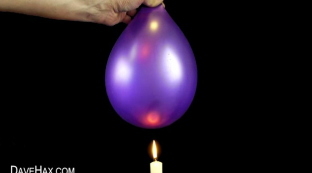 Опыт: Надуйте первый шарик и подержите его над зажженной свечкой, чтобы продемонстрировать, что от огня шарик лопнет. Затем во второй шарик налейте обычной воды из-под крана, завяжите и снова поднесите к свечке. Окажется, что шарик с водой спокойно выдерживает пламя свечи.