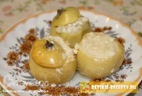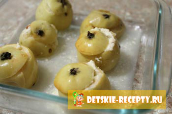 4. Детским творожком начинить яблочко вровень со срезанным краем.