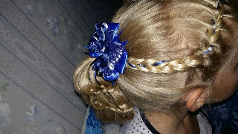 Хвастики - хвостики )Челку отрастили, но она все равно выскальзывает из всех хвостов и кос, кроме такой косы-ободка. К 1 сентября решила попробовать еще и лентой с бусинками ее украсить.