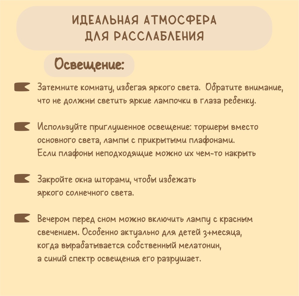 Продолжаем тему расслабления! Вы наигрались и посмеялись, что дальше? Пора создать правильную атмосферу. Иногда ребенок капризничает во время массажа или чтения, а причина — в мелочах, которые мы упустили.