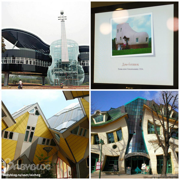 Темой занятия был "ДОМ". Но не дом, который квадратик плюс треугольничек, а необычный дом. Дом мечты или дом фантазии. Сначала детям показывали и рассказывали о различных домах, которые реально существуют в мире: