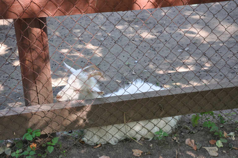 Чтобы найти зоопарк, нужно идти по центральной аллее и, не доходя до входа в усадьбу, повернуть направо по указателю "варьерные комплексы".