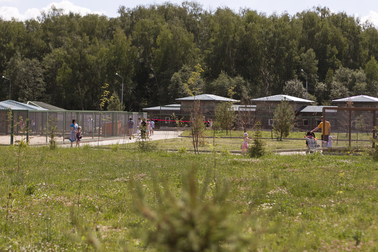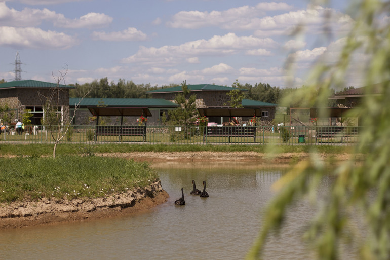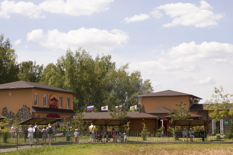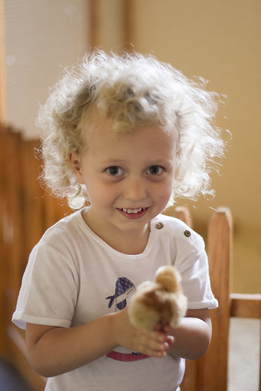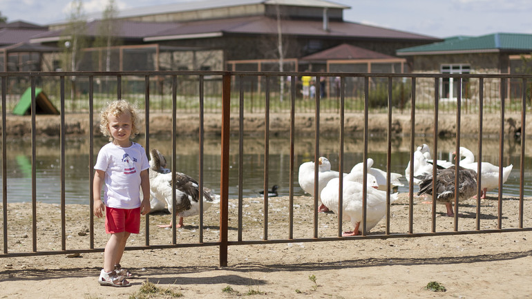 на территории есть контактный зоопарк-кролики,утята,цыплята,попугаи,морские свинки,ёжики,козочка.Подержали в руках только цыпленка,мучить животных не очень хотелось.