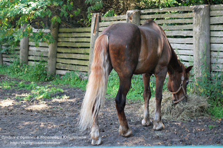 Добирались до конюшни мы от цветочного хозяйства, это где Финский поселок. Шли пешком с коляской около получаса. Поскольку они базируются в охранной зоне, проехать на машине со стороны Королева нельзя. Удобно приезжать на велосипедах, даже велосипедная парковка имеется на территории. Есть несколько лошадей, а так же пони. Мои друзья брали часовую прогулку на лошадях по лесу: остались очень довольны. В качестве бонуса: чистейший воздух заповедника. Стоимость прогулки - 1000 руб. Прогулка на пони стоит 300 - 500 руб. в зависимости от маршрута. После прогулки мы пошли кормить лошадок, они такие разные: кто-то всю ладонь облизал, а кто-то аккуратно взял морковку даже не оставив мокрого следа. Еда, как это принято во многих других местах, у них не продается, можно приносить с собой очищенные яблоки и морковку.
