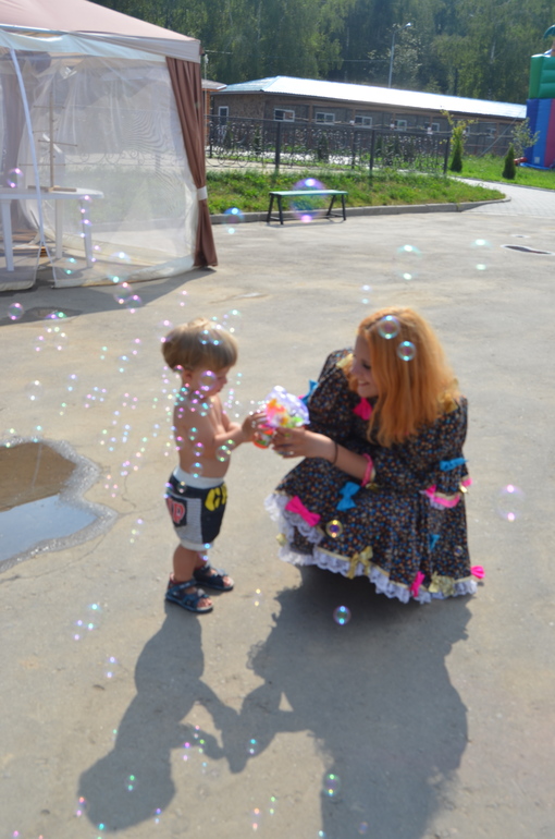 Есть шатёр с девушкой - аниматором, которая предложила поиграть с Антошкой. Рисовали каляки-маляки и пускали мыльные пузыри)))![]()