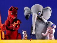 Итак, спектакль. Два отделения по 20 минут с антрактом. Первое отделение сказки "Телефон" и "Тараканище", второе "Мойдодыр" и "Бармалей". Куклы большие, красочные, большие животные: медведь, слон, бегемот, в человеческий рост.