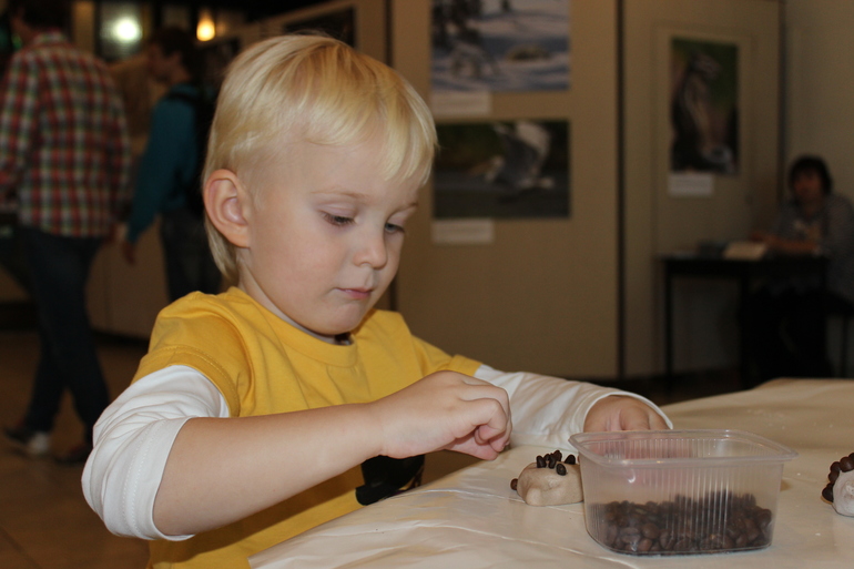 Всё так и есть. Только в субботу много посетителей, немного сумбурно. И конечно, мало что рассчитано на наш возраст, но Кирюша нашел для себя массу интересного. Первое, что попалось ему на глаза... конечно же, ЕЖИ!