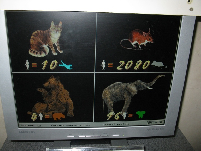 На третьем этаже, пока сын отсыпался, я взвесилась на "живых весах", и узнала, что вешу как 1/4 медведя :)