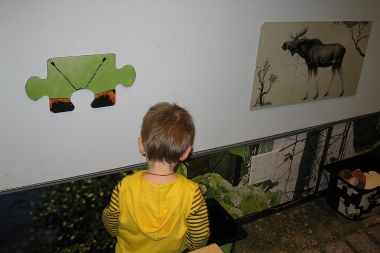 В залах с постоянной экспозицией Пашу привлекли морские жители под ногами, жуки за стеклом, магнитные пазлы и голоса птиц, которые можно услышать, нажав на кнопку на специальном постаменте. Сам Паша дотягивался только до самых низких кнопок, поэтому я постоянно поднимала его и читала, кто сейчас будет петь.