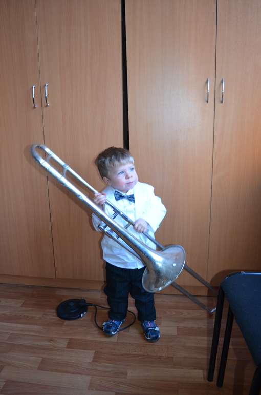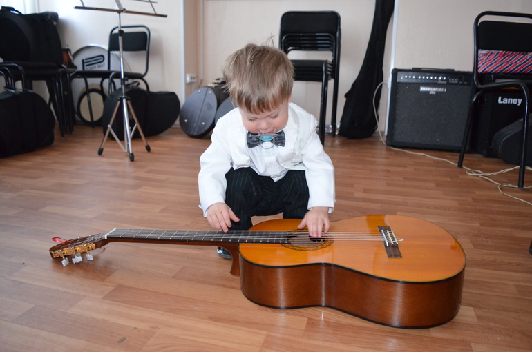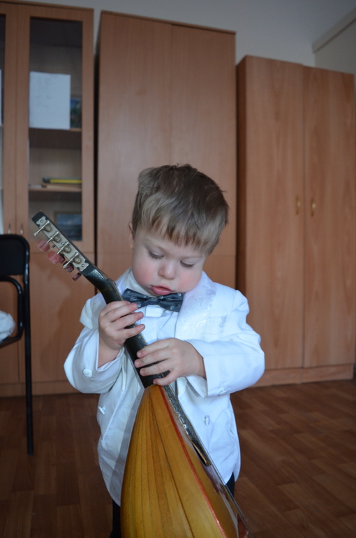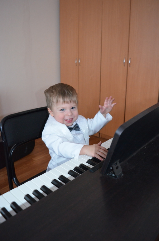 Потом мы зашли ко мне работу в музыкальный класс и Антошка поиграл на всех инструментах))