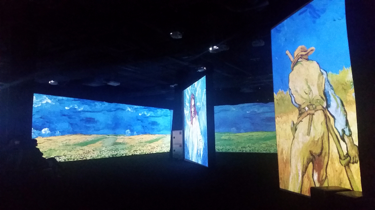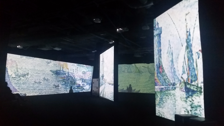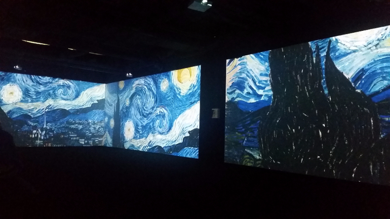 Идет шоу 50 минут, блоки по художникам: Малевич, Ван Гог и т.д. Музыка отлично подобрана, картины оживают, присутствуем динамика и разные тона эмоций. Никита у меня первые 10 минут сидел с открытым ртом от удивления, подходил к экранам, трогал. Максима больше впечатлили трубы на потолке=)) Вот такие разные - Никита более чувственный и скорее гуманитарий по складу ума, а Максим с инженерным складом. Но в любом случае нам понравилось, дети просидели 35 минут и устали, пришлось закругляться. Удивительно, что мужу понравилось - он у меня вообще далек от культуры и искусства.