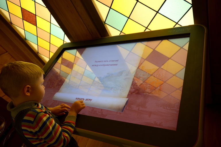 Очень рекомендую побывать с детьми в этом прекрасном месте, тем более, что и для них там найдутся развлечения. Во дворце есть два интерактивных стола, один с информацией о царской семье и Коломенском, а второй с детскими головоломками-играми.