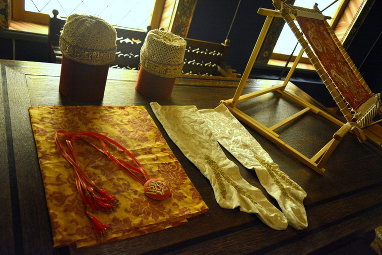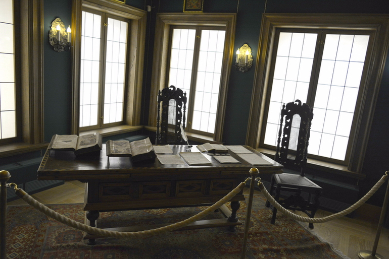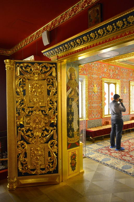 Я с сыном была в Коломенском в субботу и народа соответственно было очень много + во дворце ещё проходила церемония бракосочетания, поэтому получилось мало фото комнат целиком. В основном получилось запечатлеть отдельные предметы обстановки.