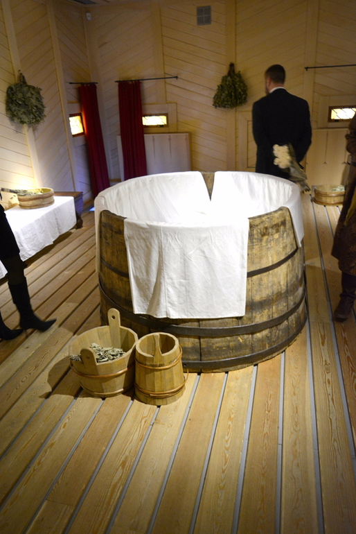 Можно посидеть и посмотреть фильм о царском трапезничестве.